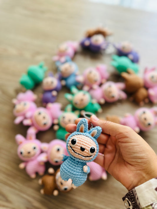 Labubu inspired crochet keychain. cute monster keychain.
