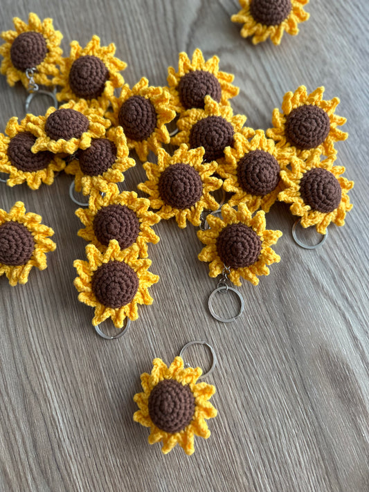 Mini Hand Crochet Sunflower Keychain - Pocket-Sized Sunshine