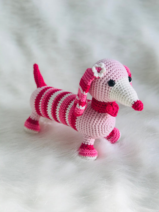 Handmade Crochet Sausage Dachshund Dog: Nursery & Bedroom Decor