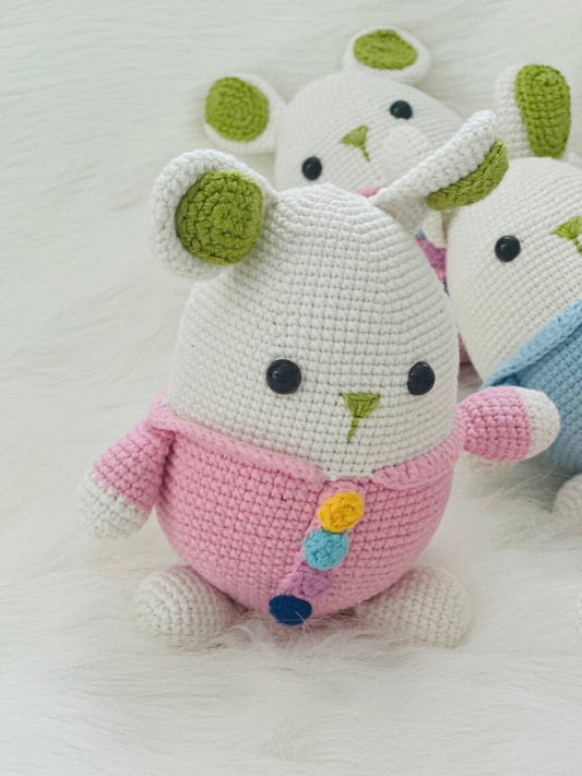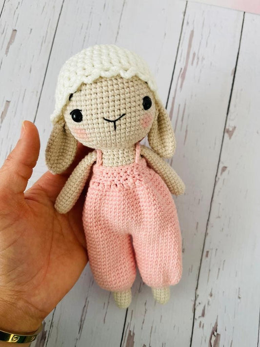 Hand Crocheted Cute Bunny with Hanging Pant in Pastel Colors - Adorable Easter Decor and Nursery Decoration