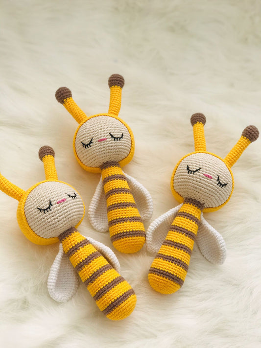Handmade Crochet Bee Rattle: Safe & Engaging Baby Toy