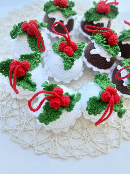 Handmade Crochet Christmas Pudding Decoration - Festive Home Decor or Tree Ornament in Chocolate and White