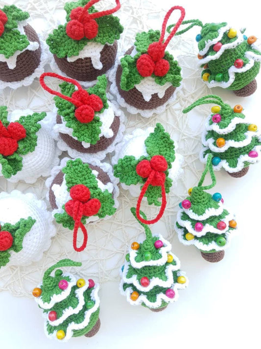 Crochet Christmas Tree Decorations: Santa, Elf, Pudding, Reindeer - Handmade Holiday Ornaments for Festive Home Decor and Gifts.