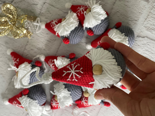 Crochet Scandinavian Gonk Christmas Decoration - Handmade Gnome Ornament for Tree or Home Decor - Red and White Scandinavian Style