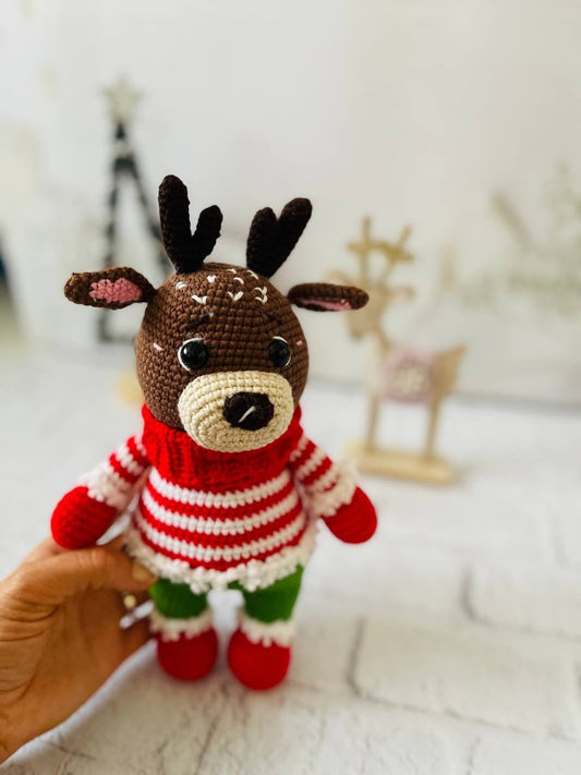 Handmade Crochet Reindeer Plush Toy - Soft and Cuddly Amigurumi Stuffed Animal for Kids and Adults - Perfect Christmas Decoration or Gift