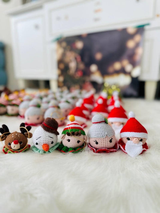 Reindeer , Santa, elf, snowman crochet tree decoration.