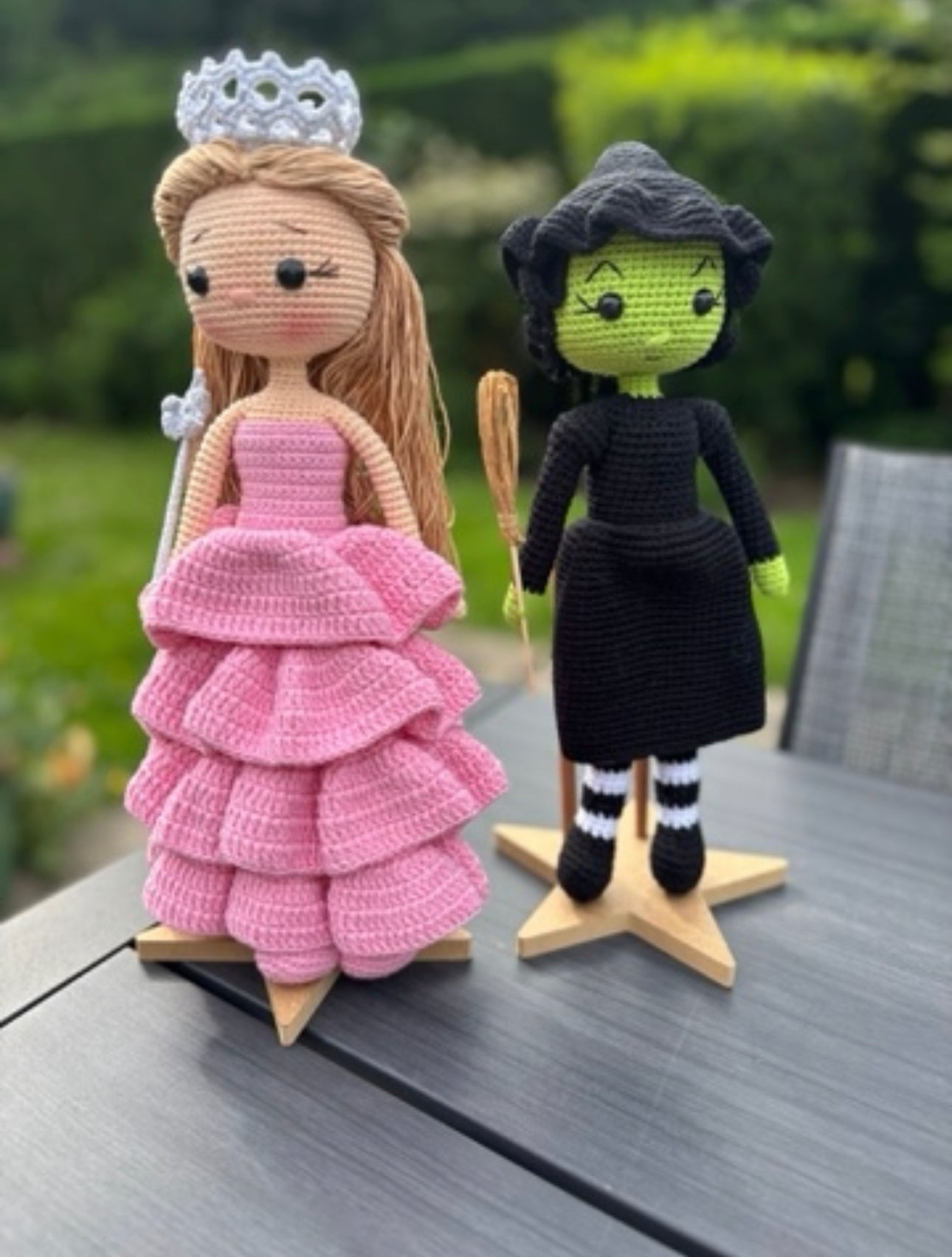 Glinda Crochet doll . Elphaba crochet doll.