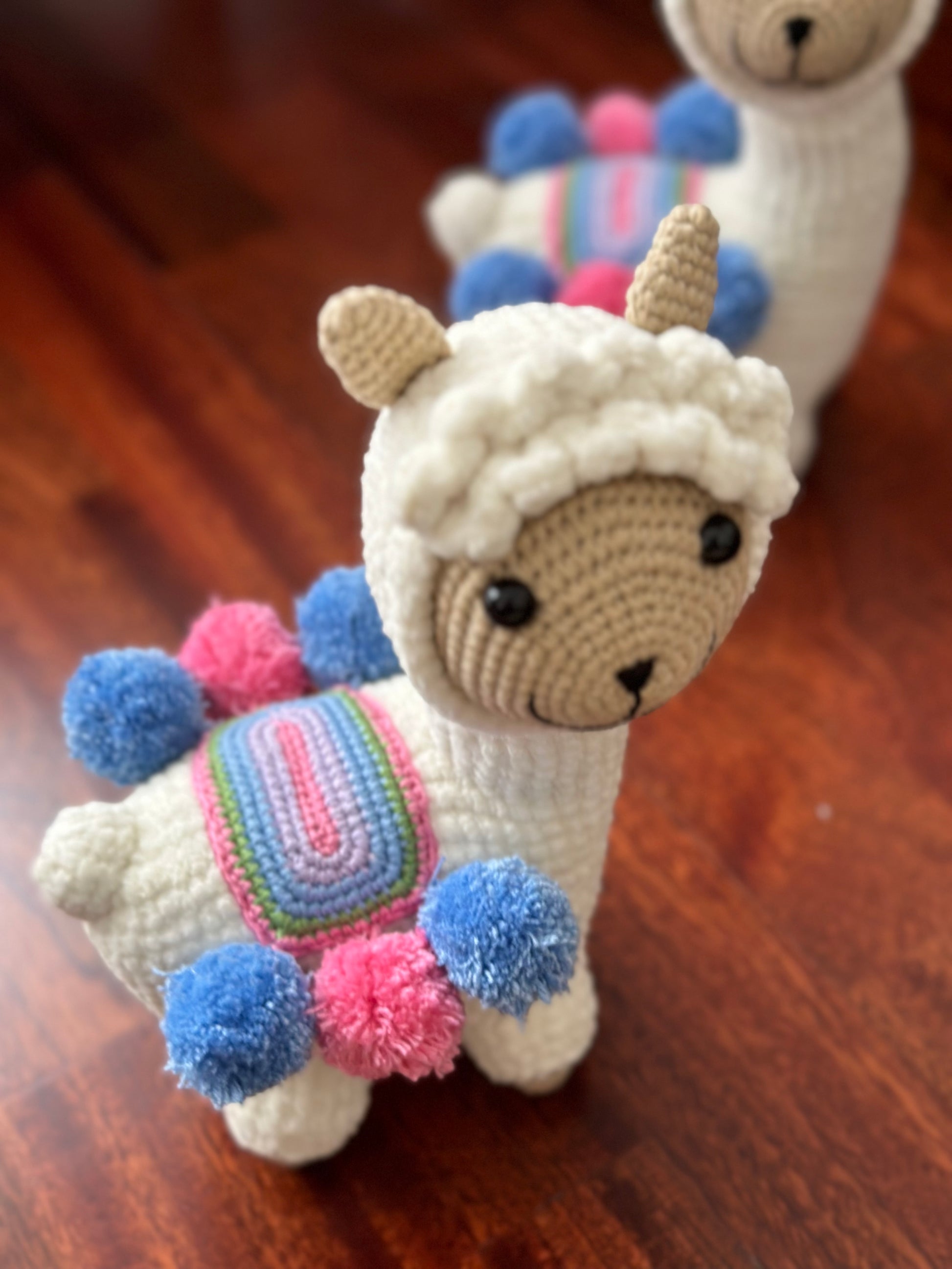 ⦿ Hand crocheted alpaca/llama made with chenille yarn.